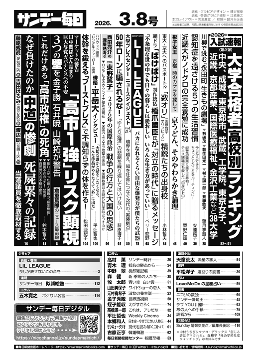 ・〔サンデー毎日目次〕2026.3.8号