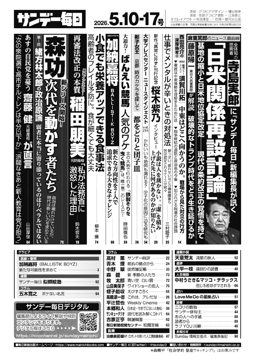 ・〔サンデー毎日目次〕2026.5.10-17号